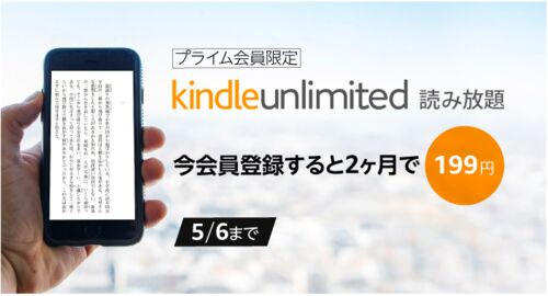 AmazonでKindle Unlimitedが2ヶ月間で199円のキャンペーンを実施中です。5月6日までの申込みとなります。 通常Kindle Unlimitedは月額980円ですから、大幅値引きとなります。ただしいくつか条件がありますので注意です。 過去12ヶ月以内に30日間無料体験を行…