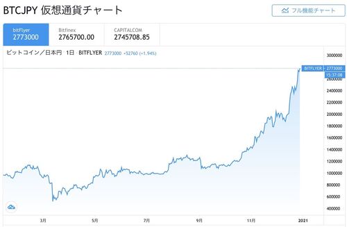 Bitcoin価格が12月27日朝に290万円を一時、超えました。28日夕方時点では276万円。17年のバブル期につけた過去最高値を更新してから、その勢いはとどまることを知りません。今年の仮想通貨の状況を簡単に振り返って、これからの未来を考えてみます。 100万円…