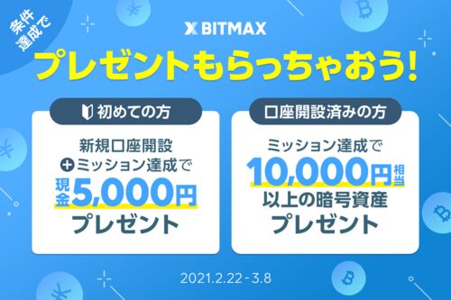 仮想通貨取引所のBITMAXが再びキャンペーン中です。口座未開設ならミッション達成で5000円プレゼント、口座開設済みならミッション達成で1万円以上のプレゼントというものです。しかし、果たして内実はどうでしょうか? ミッションにゃんにゃんキャンペーン …
