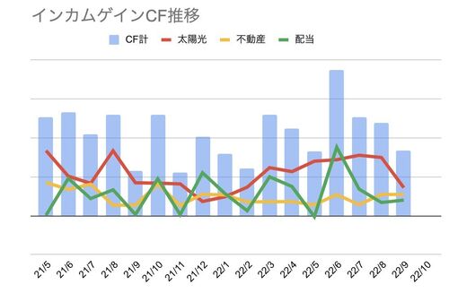毎月恒例のインカムゲインCFの推移です。総資産から入ってくるキャッシュフローについて、額の推移と、月間生活費に対して何%をカバーできているかをまとめます。 9月のインカムゲインCF CFレベルは67%に インカムゲイン利回り 9月のインカムゲインCF 9月…