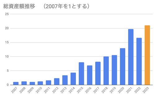 詳細な分析の前に、速報ベースということで2023年の投資成績を振り返ってみます。結果的には2023年は、投資家にとってたいへん素晴らしい年になりました。総資産は12月も1.3%増加し、その結果、2023年は1年間で26.1%、資産が増加しました。 資産額が過去最高…