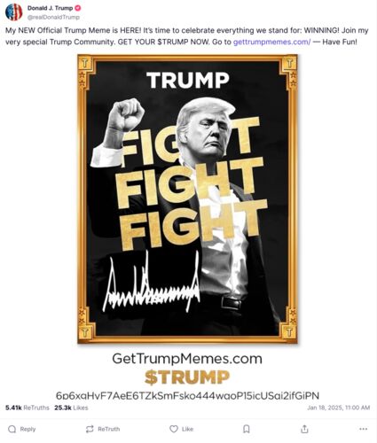 仮想通貨に前向きなトランプ次期大統領ですが、当然のように自身のコインの売却も開始。80%を自身で保有して売り出すコインは、一時時価総額2兆円に達しました。ぼくは仮想通貨にポジティブですが、こうしたミームコインは良く言ってもバブルであり、利益相…