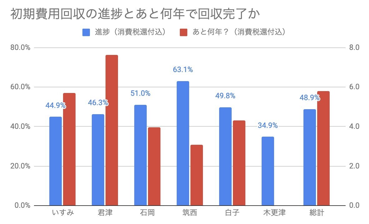 平均して3年が経過したわけで、まだ初期費用回収までの道は遠いのですが、着々と進んでいる感じがあります。