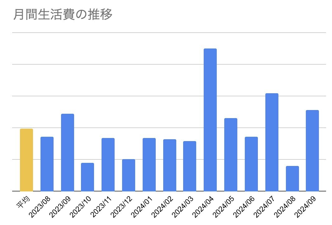 並べてみると分かるのですが、9月と4月の支出が突出しています。これはなんだろうと思ったら、子どもの学費の納入ですね。私立の学校に通うと半期に一度学費を払うのですが、これがそこそこまとまったお金になるということです。